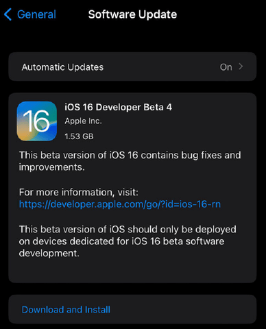 Early this morning, Apple pushed out the iOS 16 Beta 4 update for Developer Preview users. Users who have already installed the iOS 16 beta file can directly open Settings - General - Software Update, and update to the latest iOS 16 Beta 4.