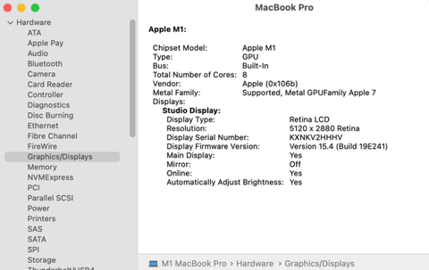According to John Gruber of Daring Fireball's testing experience, under "Graphics/Display" in the System Information, you can see the software information of Studio Display, which shows that it is running "Version 15.4 ( Build 19E241)", which is the exact same internal version number as iOS 15.4 and iPadOS 15.4, indicating that Studio Display is running the full version of iOS.