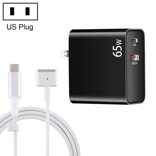 PD-65W USB-C / Type-C + QC3. 0 USB Laptop Charging Adapter + 1.8m USB-C / Type-C to MagSafe 2 / T Head Data Cable, US Plug, MagSafe 2 / T Cable, US Plug