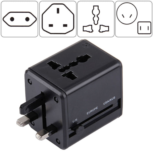 Universal US / EU / AU / UK Travel AC Power Adaptor Plug with USB Charger Socket, With USB Port