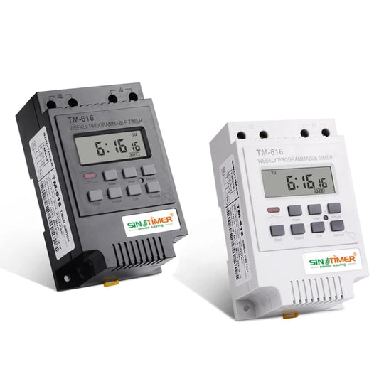 Regular price $39.27 USDRegular priceUnit price / perSale price $39.27 USD30A Weekly Programmable Digital Timer Switch Relay Control, SINOTIMER TM616B-1 110V, SINOTIMER TM616B-2 220V, SINOTIMER TM616B-4 12V, SINOTIMER TM616W-2 220V, SINOTIMER TM616W-4 12V