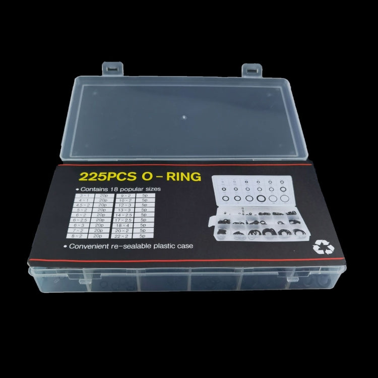 9. Specifications (inner diameter x thickness): 3x1mm (20 pieces), 4x1mm (20 pieces), 4.5x2mm (20 pieces), 5x2mm (20 pieces), 6x2mm (20 pieces), 6x2.5mm (20 pieces), 6x3mm (20 pieces), 7x2mm (20 pieces), 8x2mm (20 pieces), 13x3mm (5 pieces), 14x1.5mm (5 pieces), 17x2.5mm (5 pieces), 18x4mm (5 pieces), 20x2mm (5 pieces), 22x2mm (5 pieces), 9x2mm (5 pieces), 10x2mm (5 pieces), 12x3mm (5 pieces)