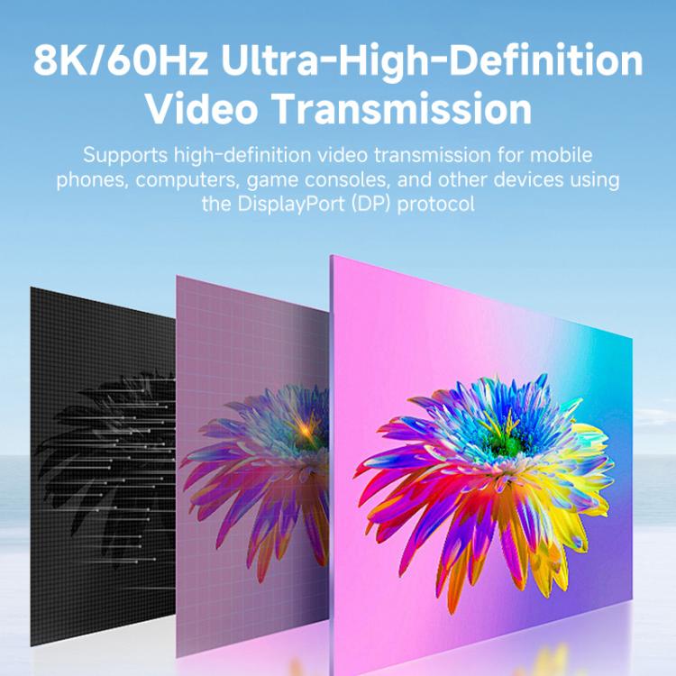 2. 8K/60Hz ultra-high-definition video transmission, supporting high-definition video transmission from devices such as mobile phones, computers, and game consoles using the DP protocol.