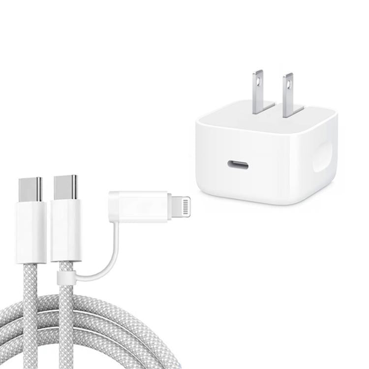 A3365 PD40W USB-C / Type-C Charger with Type-C to Type-C / 8 Pin Data Cable, US Plug, US Plug + 1m 2-in-1 Cable