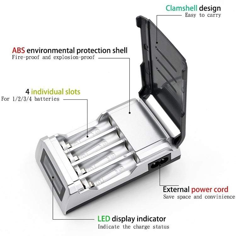 AC 100-240V 4 Slot Battery Charger for AA & AAA Battery, with LCD Display, US Plug