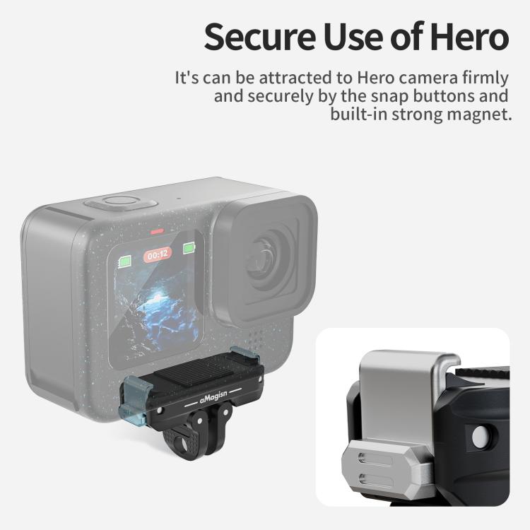 3. The quick release accessory secures the Hero camera firmly by combining magnetic attraction and claw lock fixation, keeping the Hero camera tightly in place without wobbling.