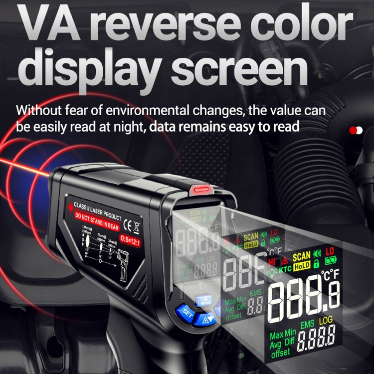 2. Laser, Celsius/Fahrenheit unit conversion, VA reverse display color screen, high and low temperature alarm