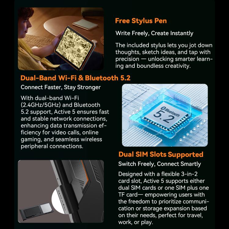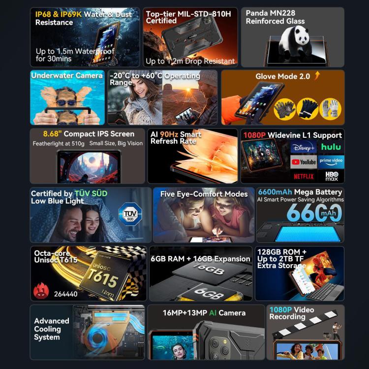 Blackview Active 5 4G Rugged Tablet, 8GB+128GB, 8.68 inch Android 14 Unisoc UMS9230E T615 Octa Core, Global Version with Google Play, Active 5