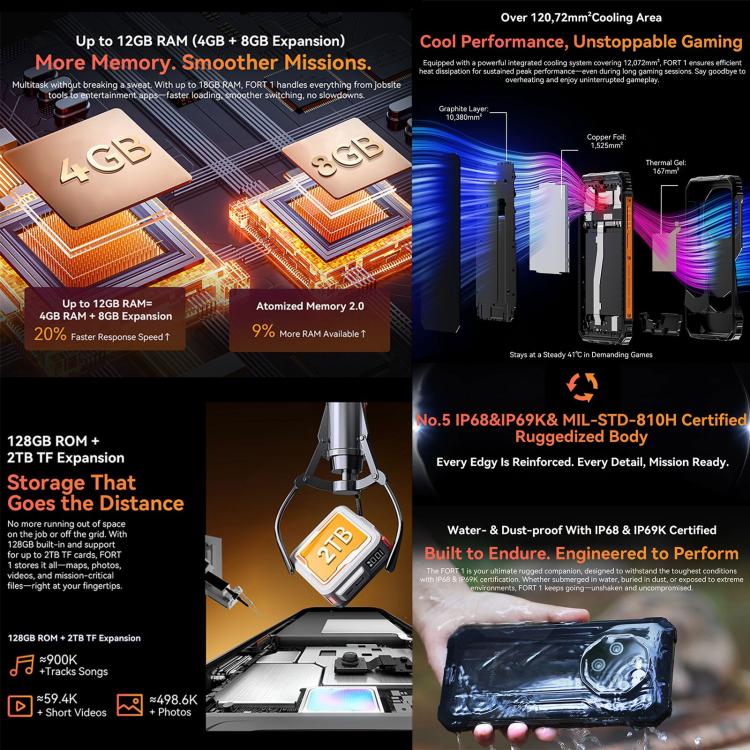 Blackview FORT 1, 4GB+128GB, 6.56 inch Android 15 Unisoc UMS9230E T615 Octa Core, Network: 4G, OTG, NFC