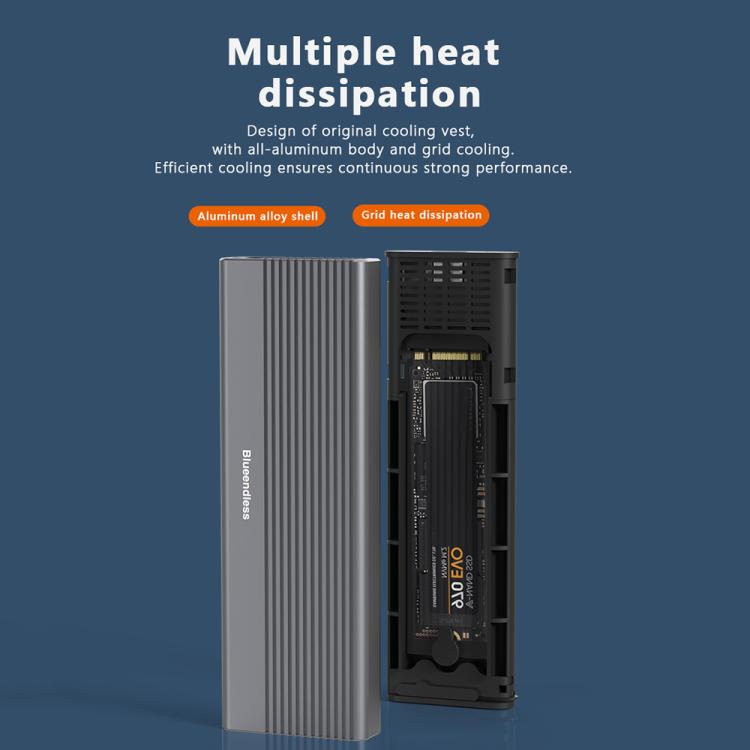 Blueendless 2818SN M.2 Nvme / Sata Dual-protocol Mobile Hard Disk Box, with Type-C to USB-A Cable, with 2-in-1 Cable
