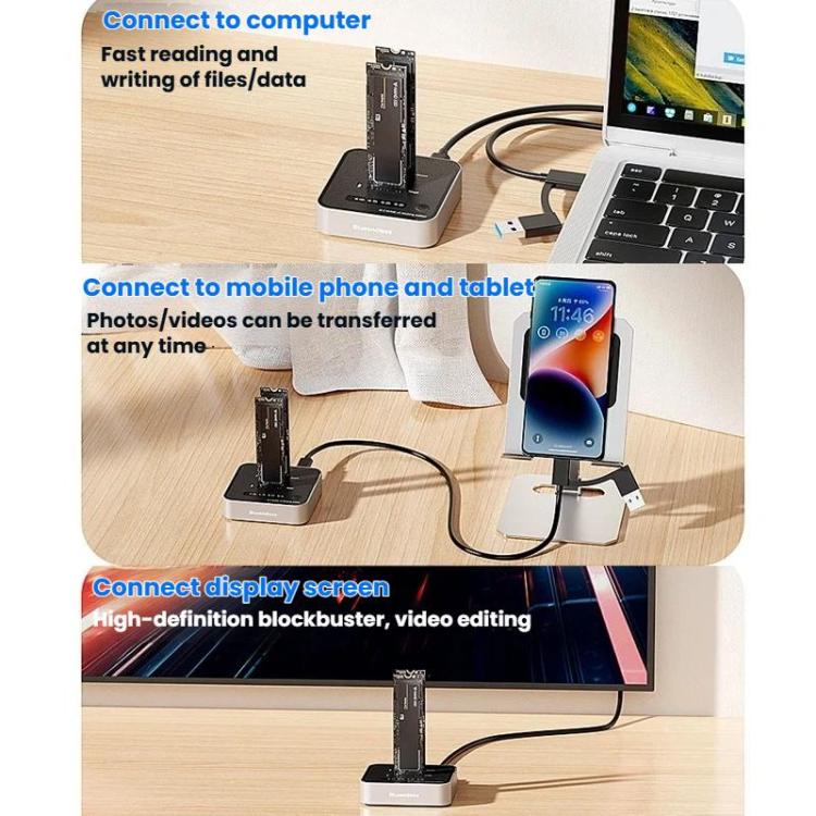 Blueendless SD08 Dual-Bay NVMe SSD Enclosure M.2 Offline Cloning Device 20Gbps High-Speed Solid-State Drive Case, US Plug, EU Plug, UK Plug
