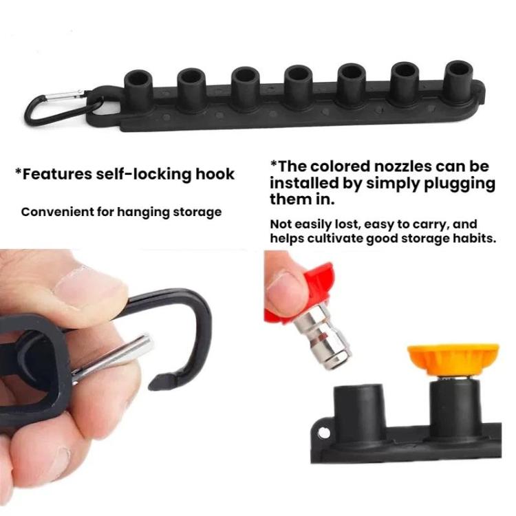 4. The clip can be attached to any pressure washer, allowing for easy access to the nozzles and preventing loss.