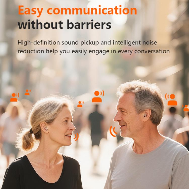 1. A discreet, high-performance sound amplification solution designed for seamless integration into daily life. This rechargeable hearing device combines advanced audio technology with a compact, invisible design, powered by a portable mini charging case. Ideal for adults seeking clarity, comfort, and confidence in social interactions.