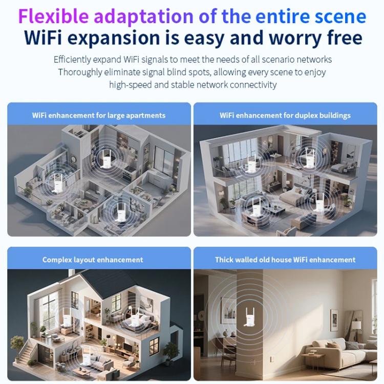 The CF-WR773BE is a WiFi wireless repeater compatible with WiFi 7 routers. It features dual-band 3570Mbps wireless speeds, stable signals, and easy configuration. Its rotatable antenna allows users to adjust the signal transmission and reception by adjusting the antenna angle. Its WiFi signal extension function is suitable for homes such as villas, duplexes, and large apartments, effectively solving signal blind spots and making it an ideal product for complex and large apartments.