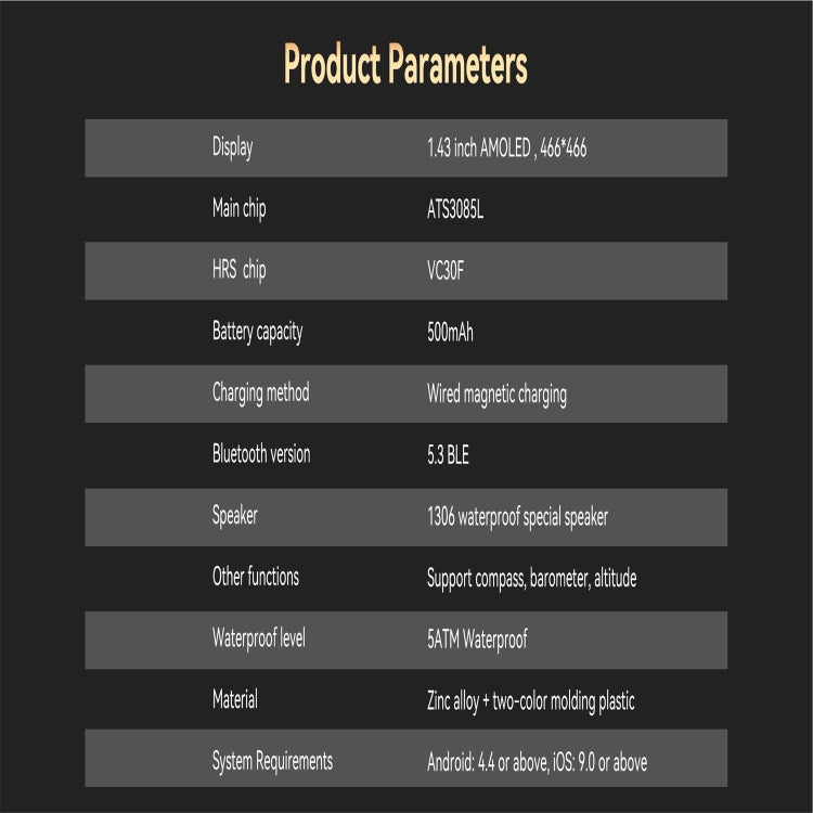 DM56 1.43 inch Color Screen Smart Watch, Support Bluetooth Call / Health Monitoring