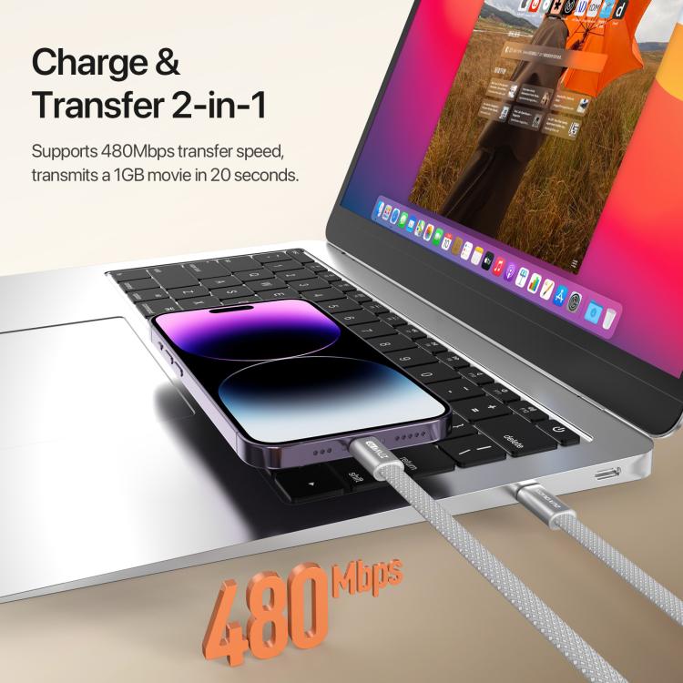 DUX DUCIS AUTO Series 27W Type-C to 8 Pin Magnetic Nylon Braided Data Cable, Length: 1m, Type-C to 8 Pin