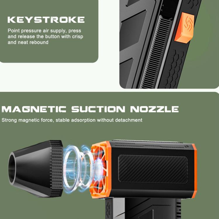 2. Three airflow speeds with one-touch switching. Point-pressure air supply releases according to pressure. Features a continuous operation mode for sustained air delivery
