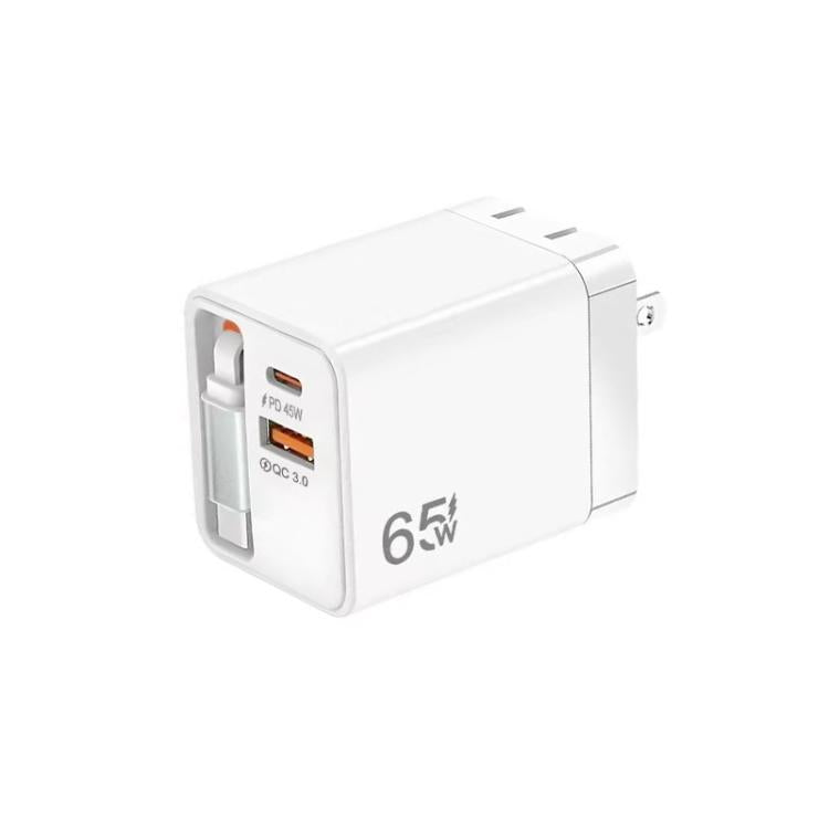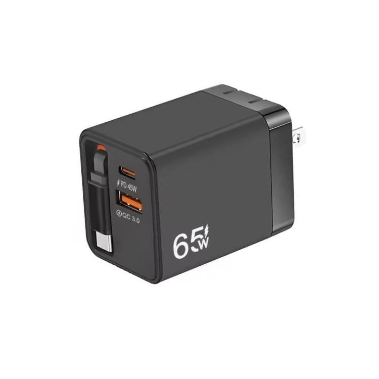 FC1 3-in-1 70cm Retractable Type-C Cable, PD3.0, QC3.0 USB Phone Charger, US Plug, US Plug