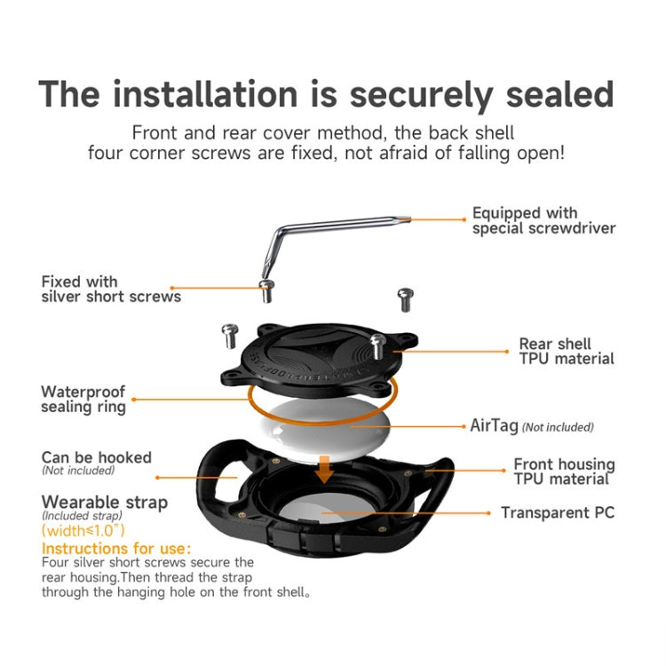 For Airtag Watch Band IP67 Grade Waterproof Case With Paste Bracelet