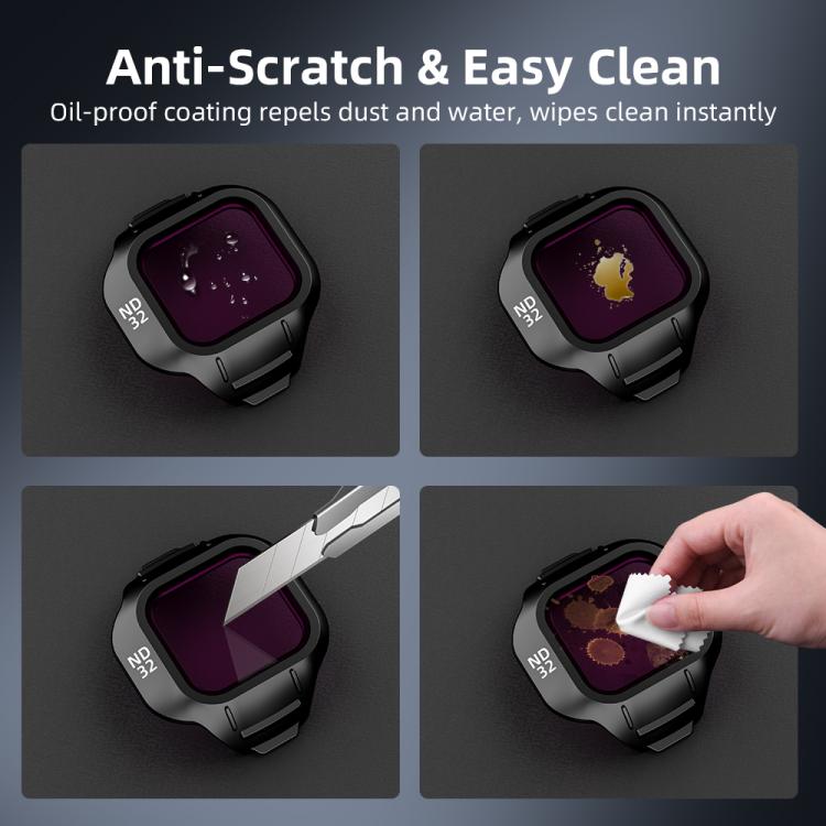 4. Hydrophobic and oleophobic, it resists water and fingerprints during outdoor aerial photography, making it easy to wipe clean. It also reduces scratches when stored for daily use.