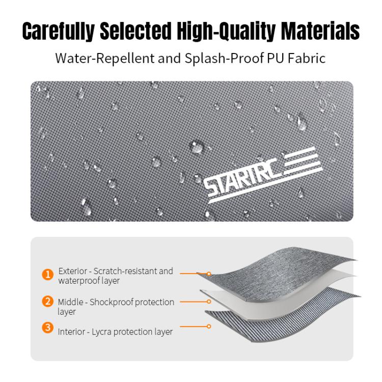 2. The exterior is made of high-quality PU material, while the interior is lined with double-layer Lycra fabric, providing comprehensive protection for your drone and batteries. It is splash-proof, sun-proof, dustproof, and durable.