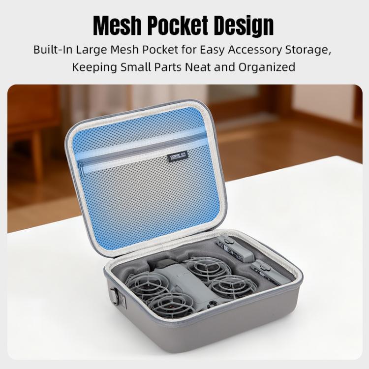 1. A dedicated carrying case designed specifically for the DJI Neo 2, precisely fitting the drone and batteries for perfect storage and everyday use. It can hold up to three batteries, including the drone.