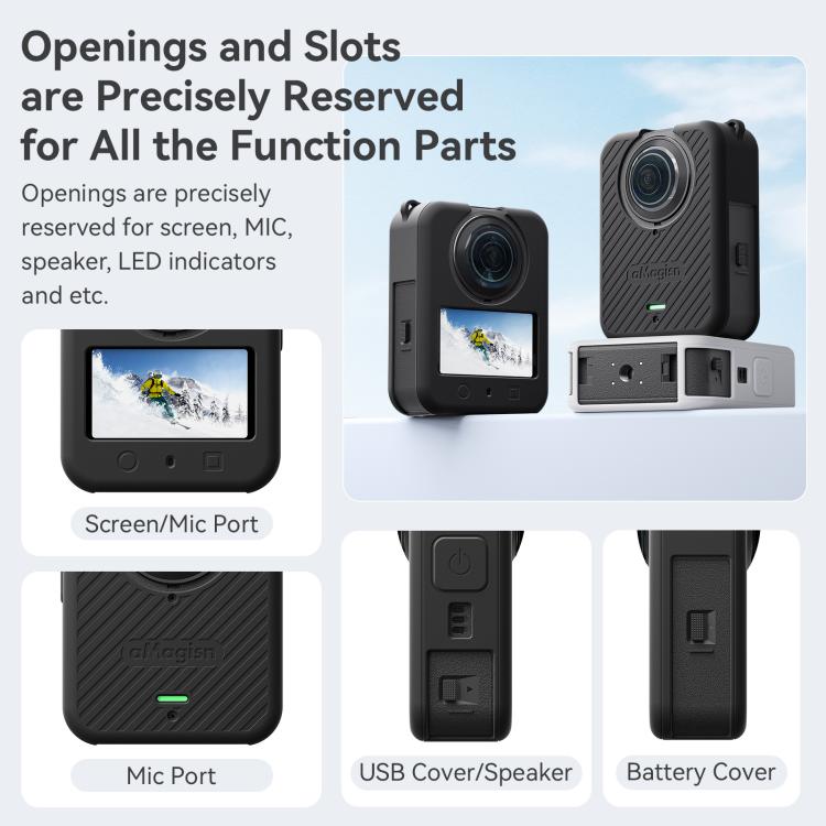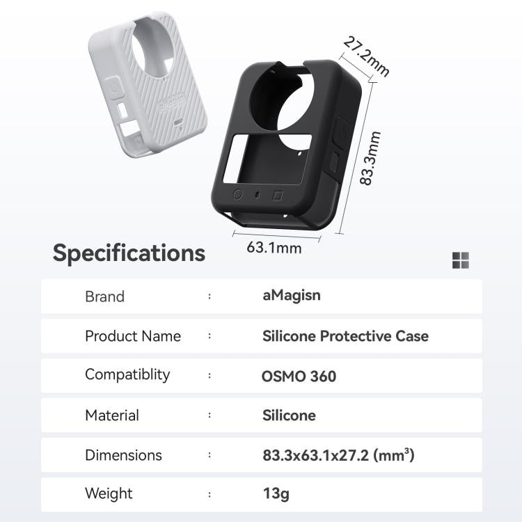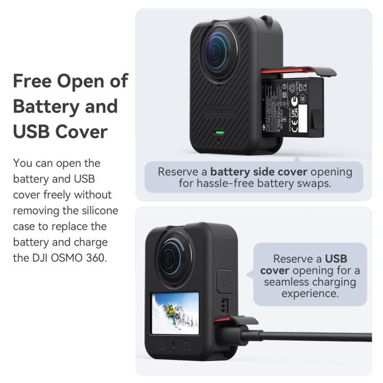 For DJI Osmo 360 Camera aMagisn Silicone Body Cover Set with Lens Cap & Neck Lanyard