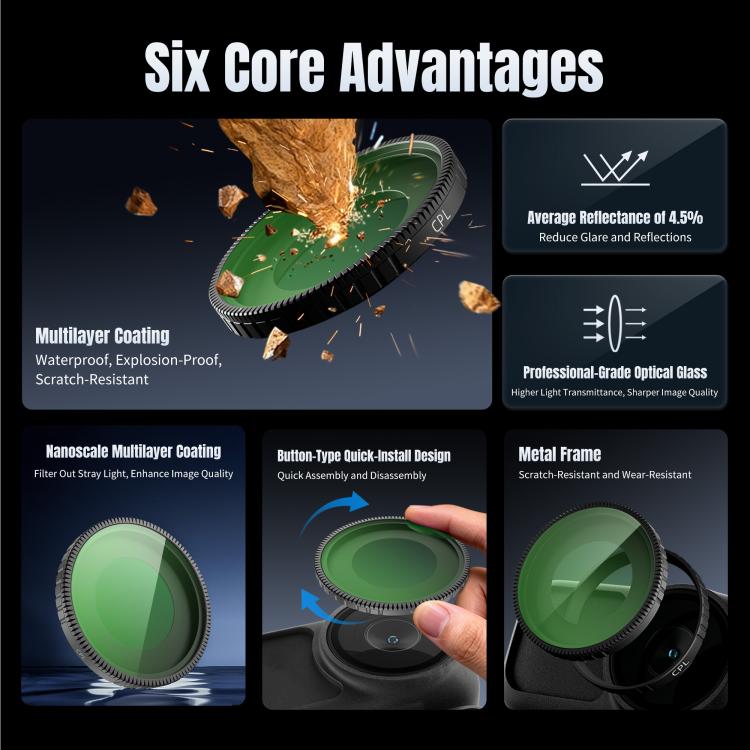 1. Essential lens protection to prevent scratches and dust: During everyday shooting or outdoor environments, the filter effectively shields your camera lens from dust, fingerprints, splashes, and scratches, acting as your first line of defense.