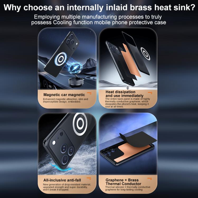 Graphene Brass Thermal Grease Cooling Frosted Magnetic Phone Case, For iPhone 17 Pro Max, For iPhone 17 Pro, For iPhone 17, For iPhone Air, For iPhone 16e, For iPhone 16 Pro Max, For iPhone 16 Pro, For iPhone 16 Plus, For iPhone 16, For iPhone 15 Pro M...