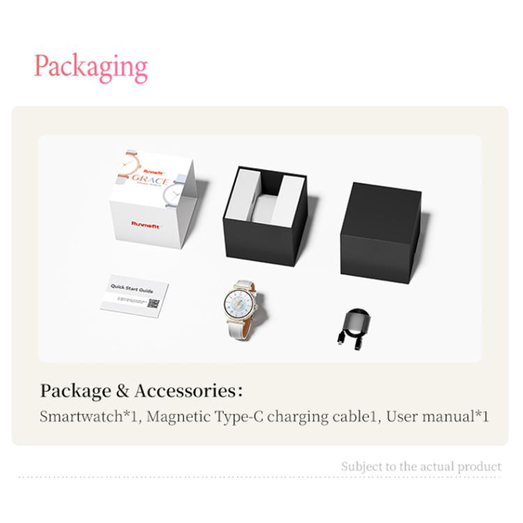 15. Package list: Smartwatch (including watchband) x 1, Magnetic charging cable x 1, Instruction manual x 1