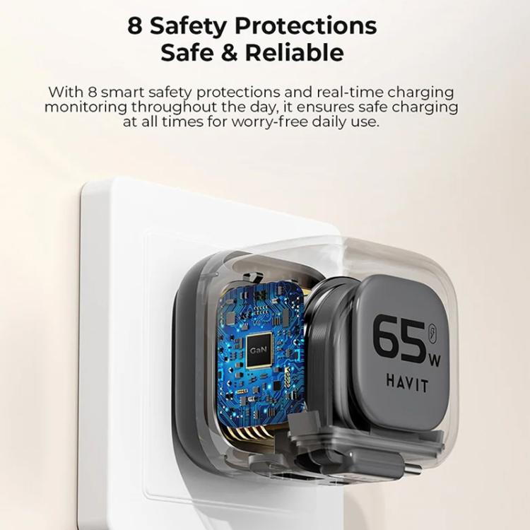 Havit UC253 65W 3 in 1 GaN Travel Charger with Type-C Retractable Cable, UC253(EU Plug)