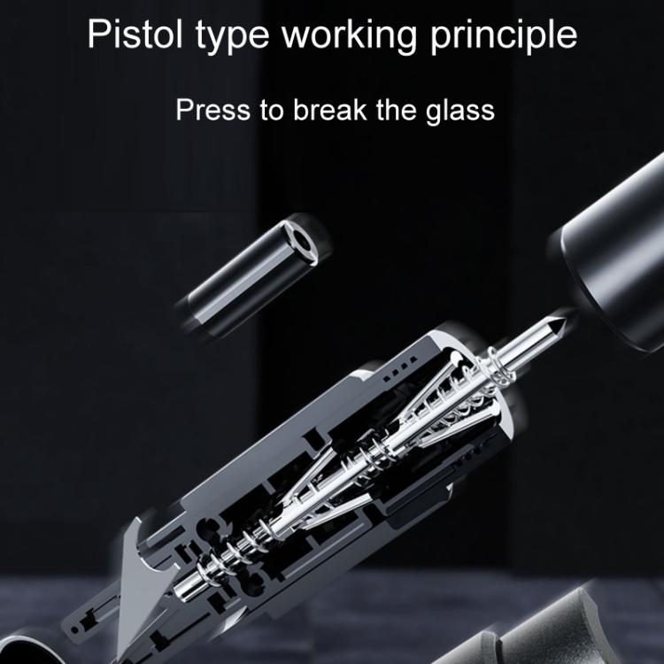 4. Press gently, the hammer head pops out automatically to break glass