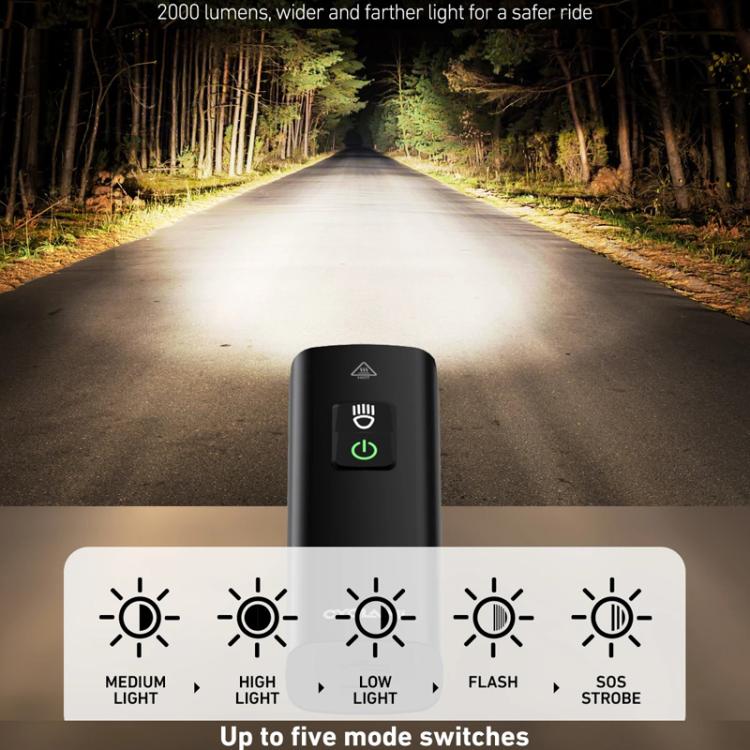 1. 2000 lumens high brightness enhances visibility with wider and longer illumination for safer cycling