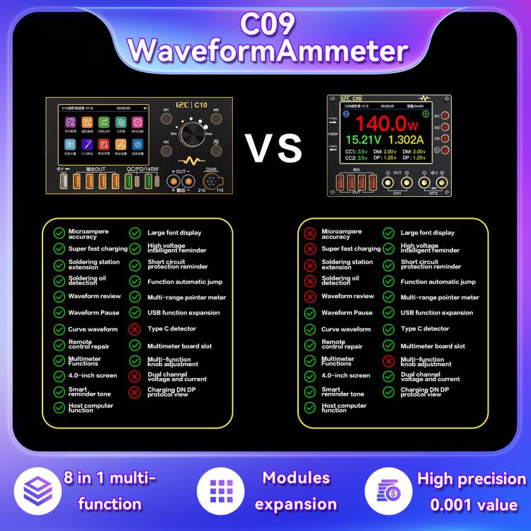 i2C C09 Charge Detection / Voltage Measurement Digital Waveform Ammeter, Host, With Expansion Board