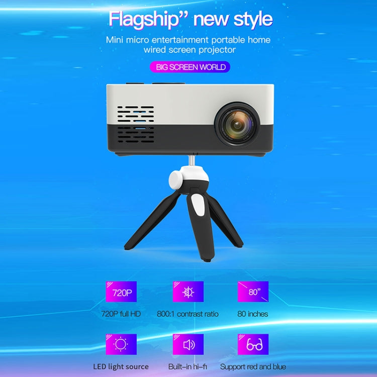 J15 1920 x 1080P HD Household Mini LED Projector with Tripod Mount Support AV / HDMI x 1 / USB x1 / TF x 1