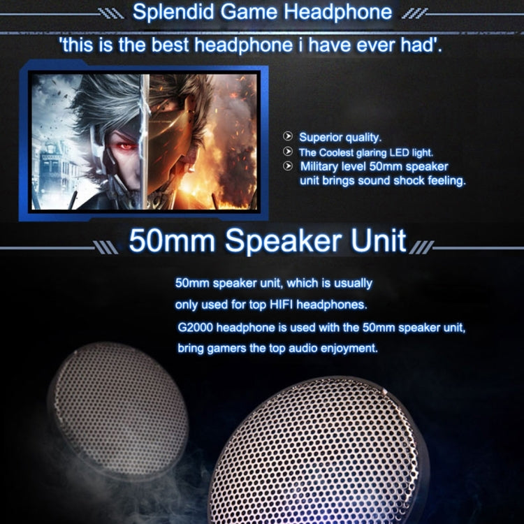 KOTION EACH G2000 Over-ear Game Gaming Headphone Headset Earphone Headband with Mic Stereo Bass LED Light for PC Gamer,Cable Length: About 2.2m(White + Red)