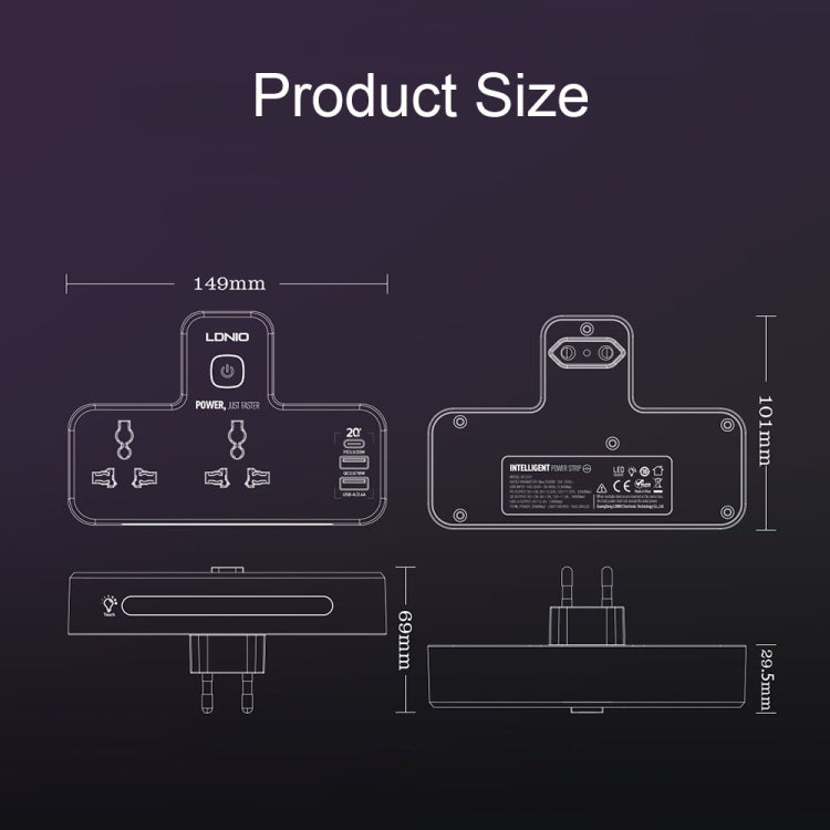 LDNIO SC2311 20W PD+QC 3.0 Multifunctional Home Fast Charging Socket with Night Light Function, Spec: