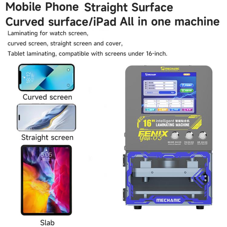 1. GAN-03 Fenix 16-inch intelligent laminating machine, universal for curved screen/straight screen tablet, can meet the communication screen 99% of LCD screen lamination