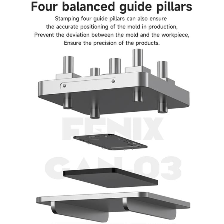 4. Four balanced guide pillars, and stamping four guide pillars can also ensure the accurate positioning of the mold in production, prevent the deviation between the mold and the workpiece, and ensure the products precision.