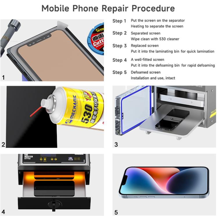 5. One-key intelligent start 16-inch lamination, precise laminating, removing air bubbles at four corners of the curved screen, multiple operation modes, grouping data, easy to fit the straight or curved screen