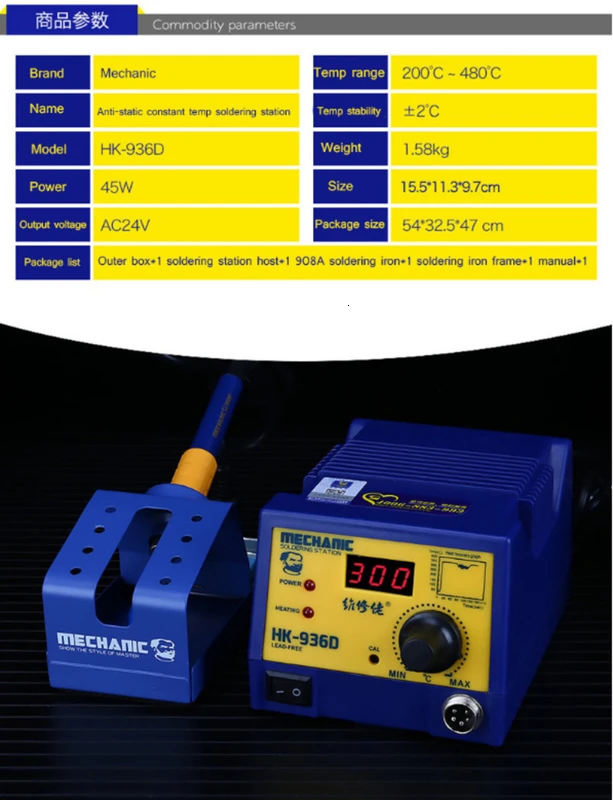 MECHANIC intelligent temperature control anti-static soldering static HK-936D Digital Station Adjustable Temp Electric Soldering