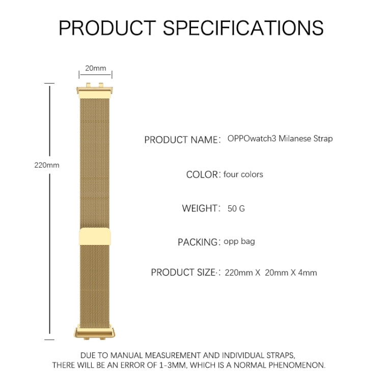 Milanese Stainless Steel Metal Watch Band, For OPPO Watch 3