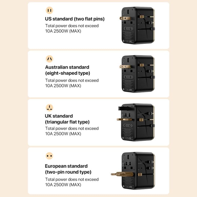 1. The standard plugs of various countries are integrated into one body, and the three-stage toggle switch is used in more than 200 countries and regions.