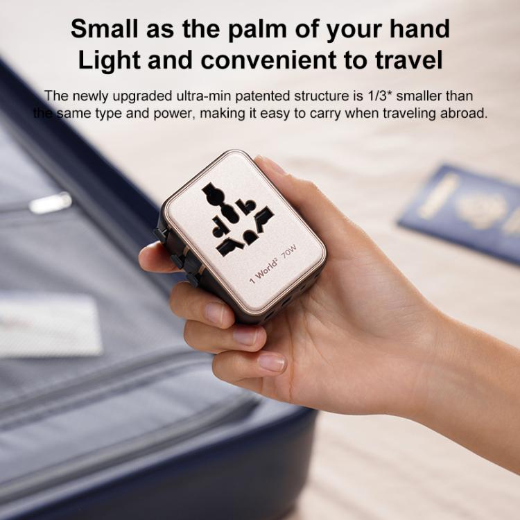 MOMAX UA22 1-World2 70W Dual AC Mini GaN Global Travel Fast Charging Socket, UA22(Black), UA22(Desert Gold)