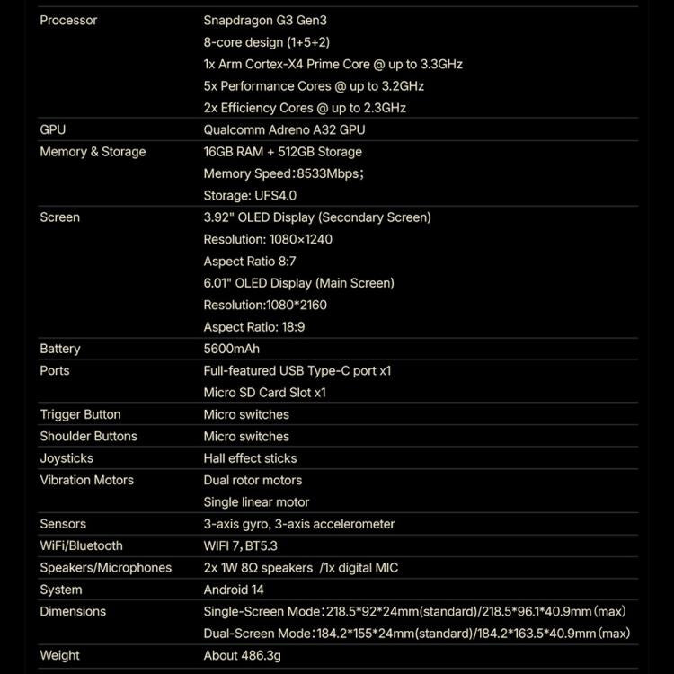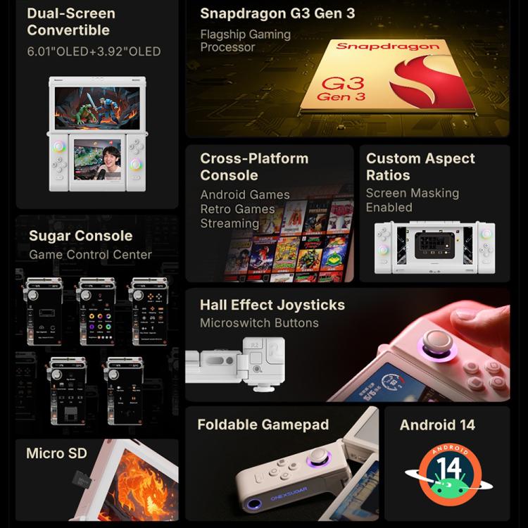 ONE-NETBOOK Sugar 1 Dual Screen Handheld Game Console, Android 14 Snapdragon G3 Gen3