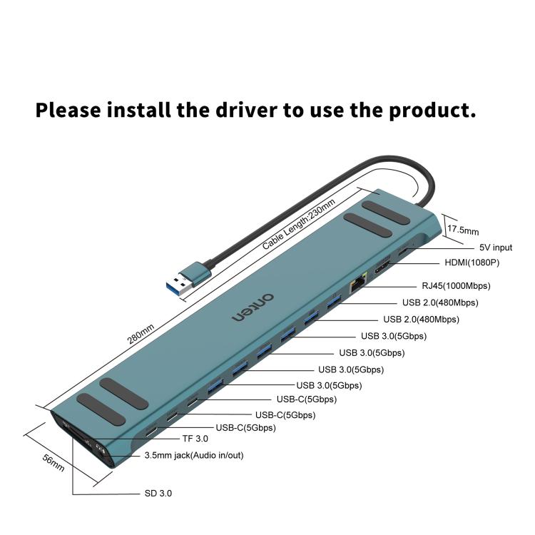 Onten OTN-9299 16 in 1 USB Multi-function Docking Station