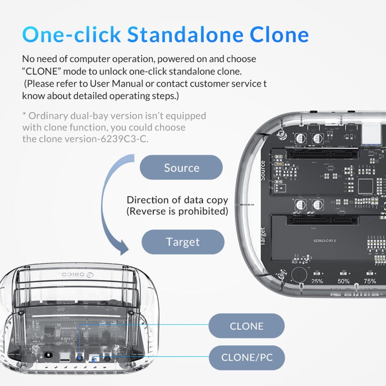 ORICO 6239C3 2.5/3.5inch 2 Bay Transparent Type-C Hard Drive Dock