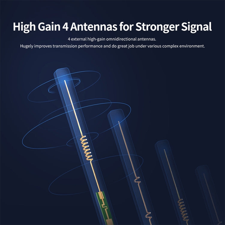 2. Product antenna: 4 external omnidirectional high-gain antennas (2.4G maximum gain 5dBi 2, 5G maximum gain 6dBi 2). Product heat dissipation: natural heat dissipation.