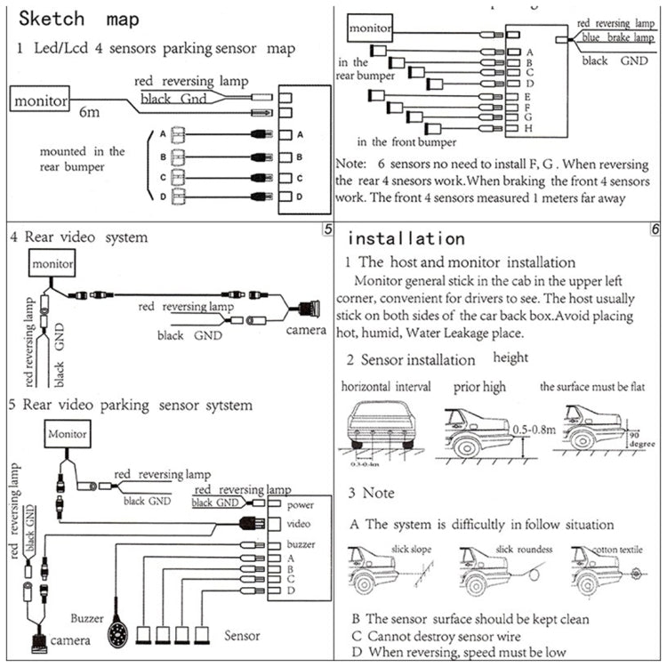 PZ-300-8 Car Parking Reversing Buzzer LED Monitor Parking Alarm Assistance System with 4*7m Front Sensors and 4*2.5m Rear Sensors, with 4 Front Sensors and 4 Rear Sensors