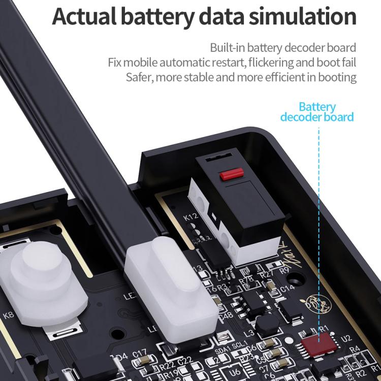 6. Actual battery data simulation: Built-in battery decoder board, fix mobile automatic restart, flickering and boot fail, safer, more stable and more efficient in booting